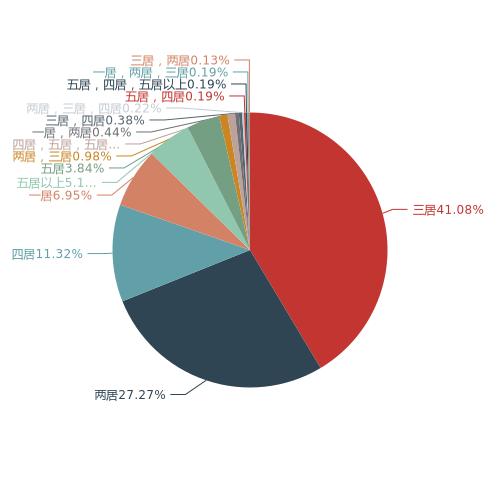 在户型的关注度上,三居是网友关注的户型,搜索占比为41.08%;其次为两居占比为27.27%;四居搜索占比11.32%。