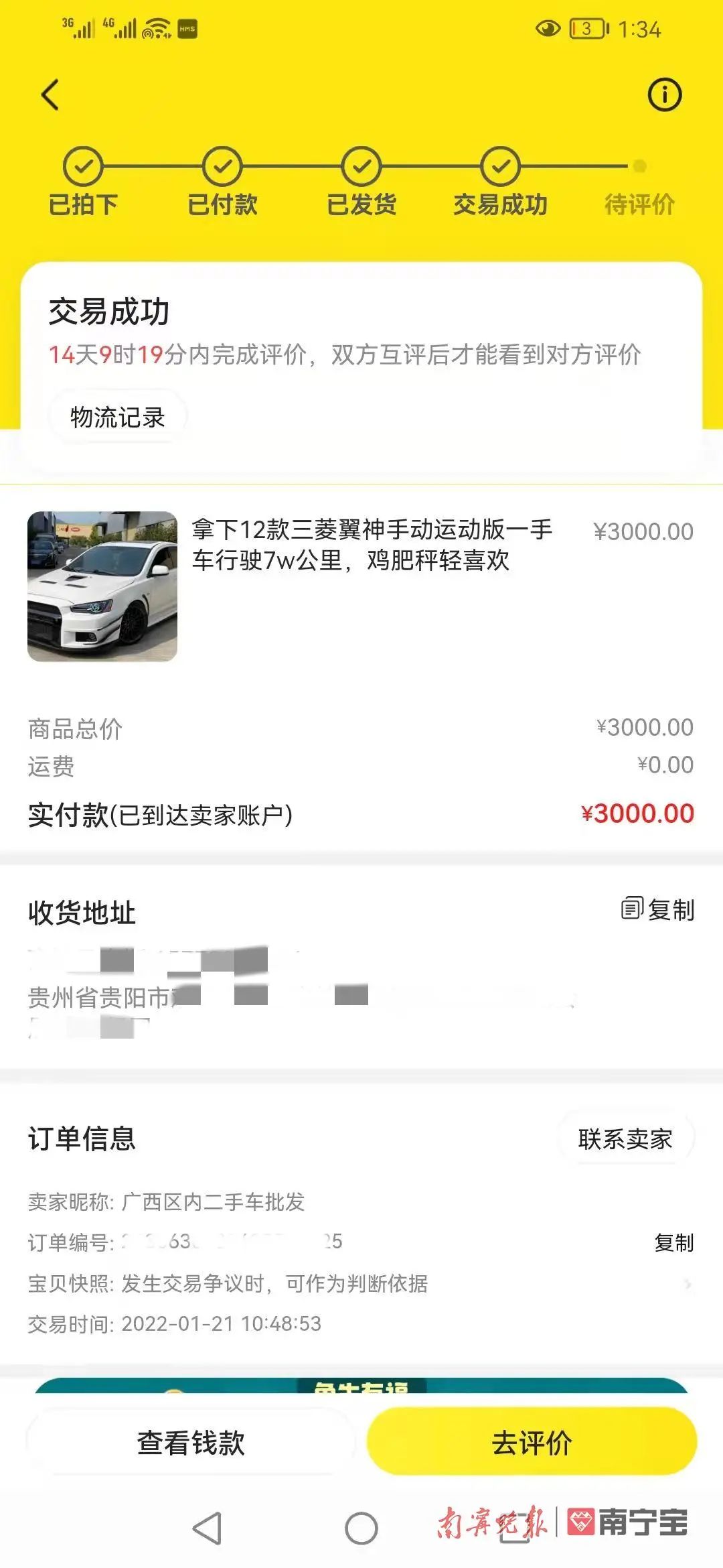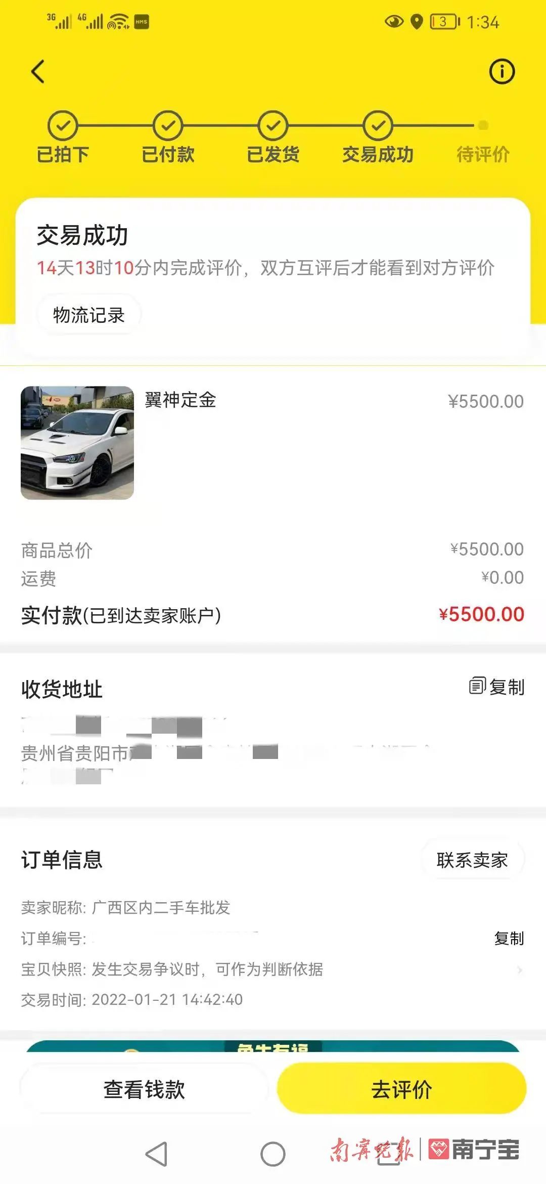 1月21日10时许,白先生通过平台向卖家支付3000元定金后,购买了一张当天贵阳东到南宁东的车票,过来找卖家提车。14时许,白先生在D1779次列车上接到卖家信息:有另一位买家也想购车,如果白先生再支付5500元的定金,就把车留给他。随后,白先生按照对方要求在平台上付了钱并确认收货。然而,当动车即将到达南宁东站,准备当面交易时,多次联系对方遭到拒绝,白先生才意识到被骗。