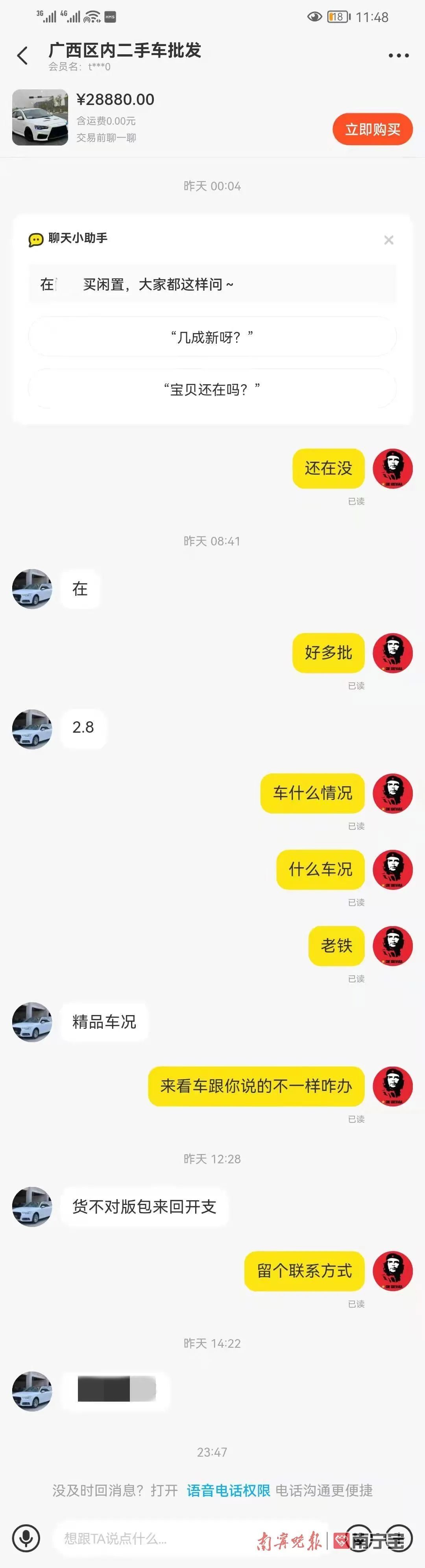 1月21日23时许,南宁铁路公安局南宁公安处乘警支队接到来自贵州省贵阳市的旅客白先生报警,称遭遇通信诈骗。据白先生反映,今年1月他想购买一辆二手汽车,于是将目光投向了某二手交易平台,通过搜索,他在平台上看中了一辆某品牌二手车,联系到卖家后双方也谈好了价格(28500元)和提车时间。