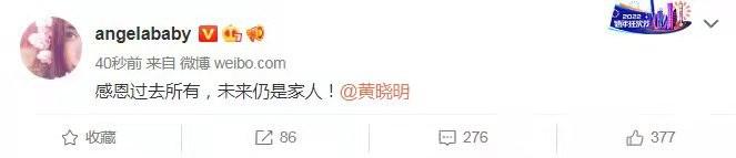 1月28日,黄晓明和angelababy在社交媒体上共同发文,艾特对方,正式官宣离婚,在发文中写道,“感恩过去所有,未来仍是家人。”