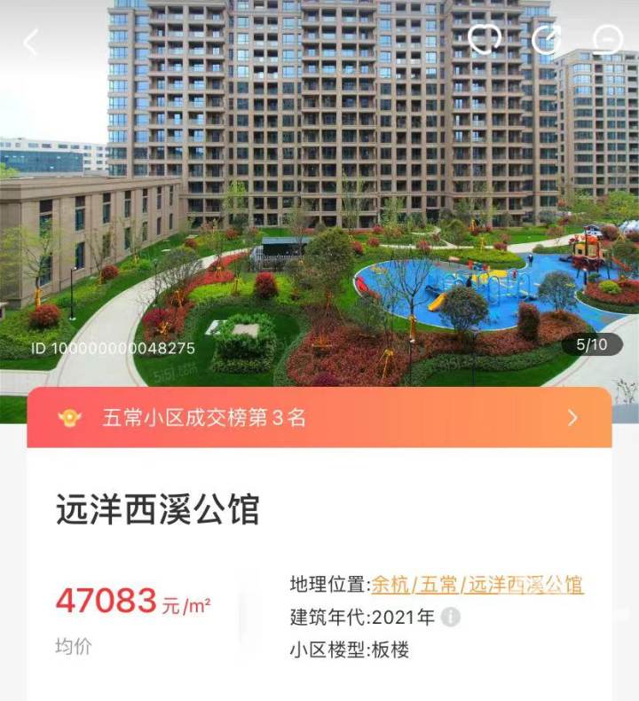 比如靠近闲林的未来海小区,去年最高卖到过5万/方,89方成交价450万,现在基本稳定在400万左右,下跌了50万。