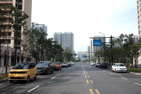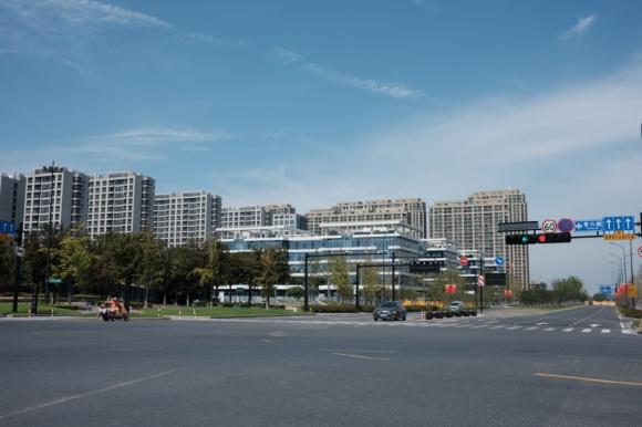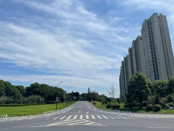 大江东街景——青六路与南沙路,左侧为东湖公园,右侧为东湖城