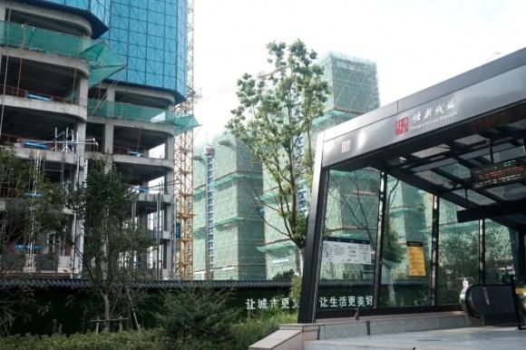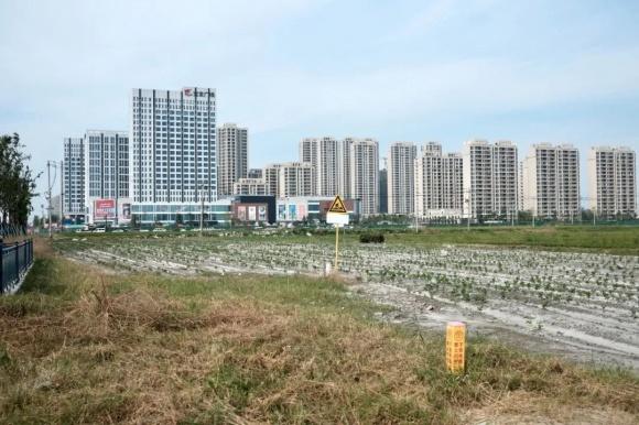 站在地铁7、8号线换乘站青六中路站旁,往北看,田野与宝龙广场、龙润城组成一道城乡结合的风景线