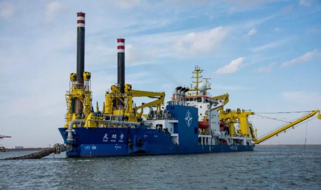 图为天鲲号挖泥船挖泥船是一种非常特殊的工程船舶,它的功能正如它的名字,可以从海底抽取泥沙,在海洋工程领域内,挖泥船的应用范围非常广阔,比如一座港口如果想扩建停靠吨位更大的船舶,就必须使用挖泥船挖深航道和泊位的水深,而如果中国想进行填海造陆,在浅滩打造小岛或其他地形,也需要使用挖泥船从附近海域挖来泥沙吹填到浅滩上,把它积累成一座足以载人或其他设施的小岛。