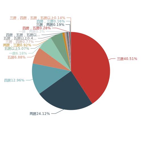 在户型的关注度上,三居是网友关注的户型,搜索占比为40.51%;其次为两居占比为24.12%;四居搜索占比12.96%。