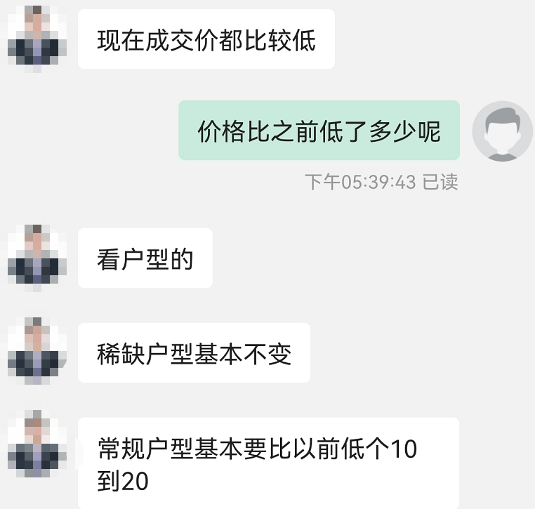 还有中介表示:现在成交价都比较低,稀缺户型不变,常规户型基本比以前跌了10-20万。