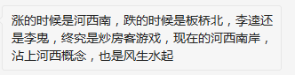 不少网友也在社群里发表自己的看法:“涨的时候是河西南,跌的时候是板桥北。”