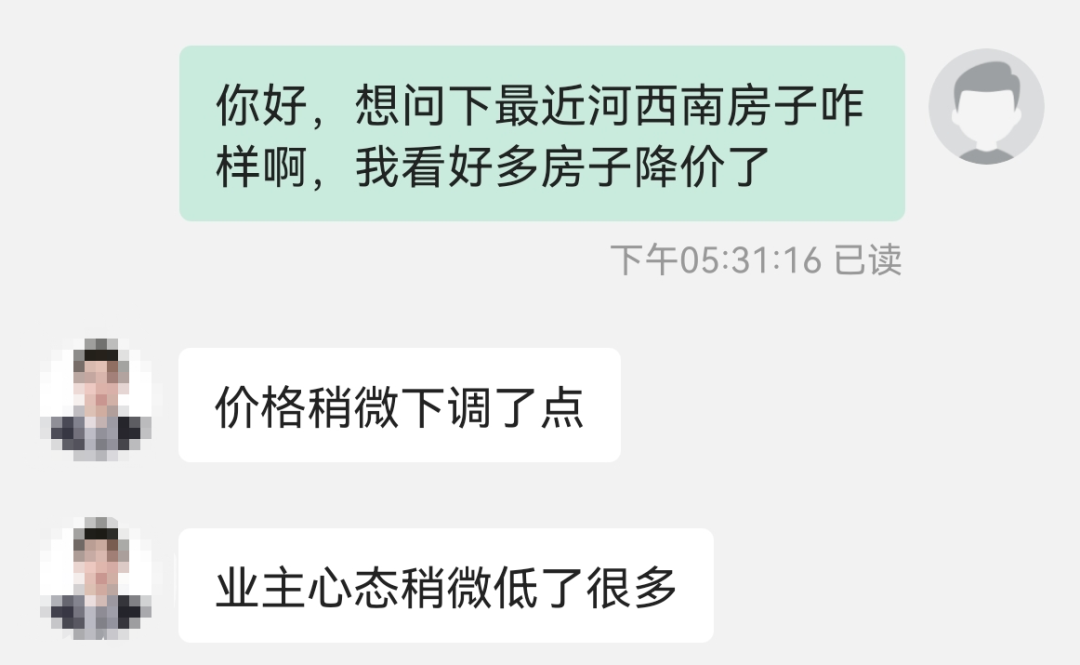 为此,我咨询了多位河西南中介以及业主,大部分中介都表示:目前河西南的二手房价稍微下调了,业主的心态(预期)低了。