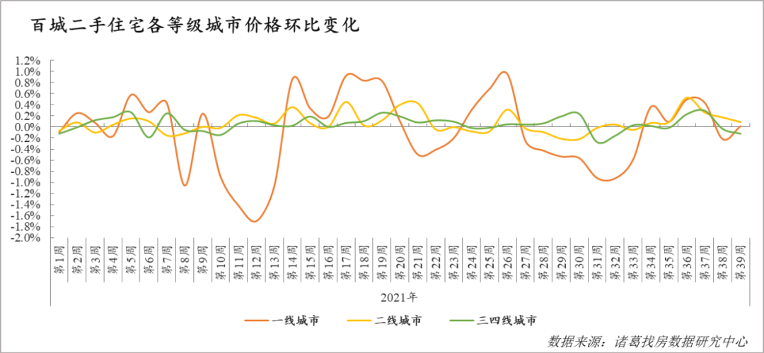 一、第39周百城二手住宅市场价格与上周持平,市场平稳运行态势延续